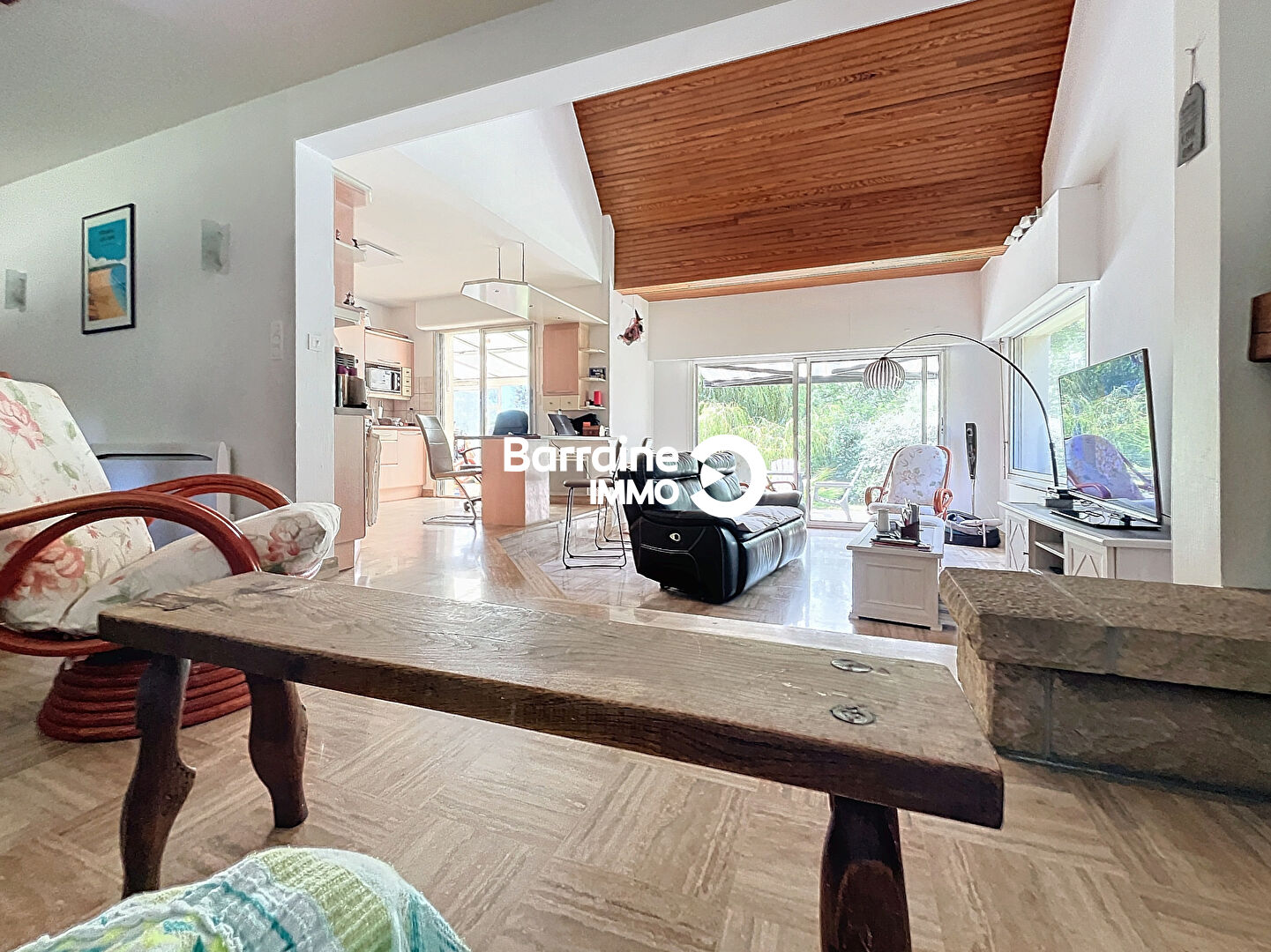 Laissez-vous séduire par cette superbe maison contemporaine nichée dans un écrin de verdure, à l’abri des regards et du tumulte. Spacieuse et lumineuse, elle offre un bel espace de vie avec salon-séjour chaleureux agrémenté d’un poêle à bois, ouvert sur une cuisine moderne, aménagée et entièrement équipée. Cet ensemble convivial s’ouvre sur une grande terrasse ensoleillée et une véranda chauffée, idéale en toute saison. Côté nuit, vous trouverez 3 belles chambres dont une suite parentale en rez-de-chaussée, parfaite pour vivre de plain-pied. Le tout est implanté sur un magnifique parc arboré d’environ 1600 m², propice à la détente et aux moments en famille ou entre amis. Un bien rare, alliant confort, nature et modernité à découvrir sans tarder. DPE : E ,classe climat E, ERNT disponibles en agence PRIX : 315 000 euros dont 5 % d’honoraires agence TTC à la charge de l’acquéreur. 300 000 euros hors honoraires . (5.00 % honoraires TTC à la charge de l’acquéreur.)