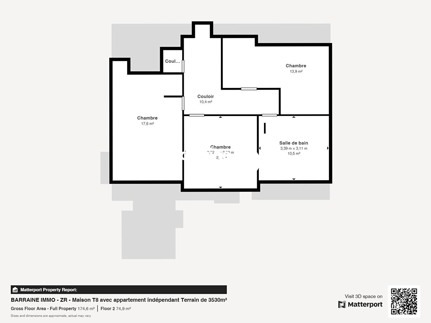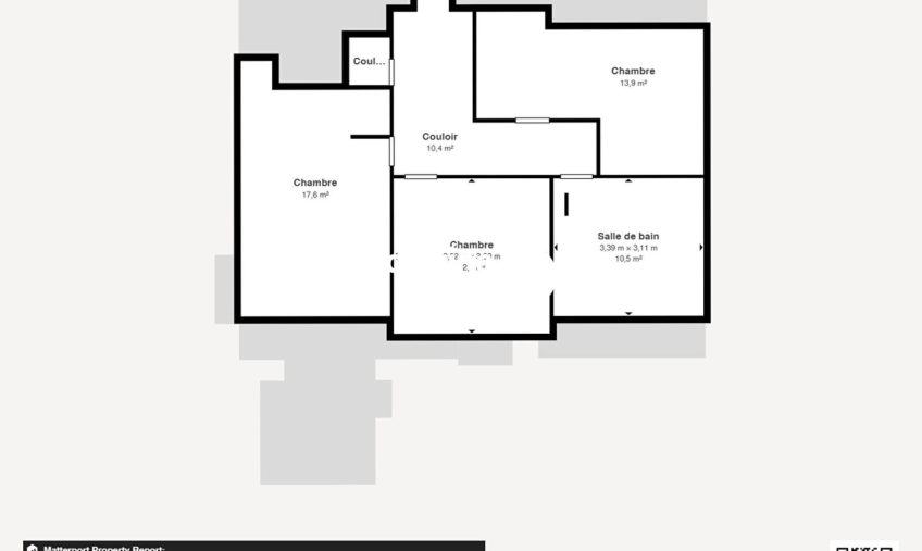 Au deuxième étage, trois chambres et une salle de bain complètent l’espace nuit.