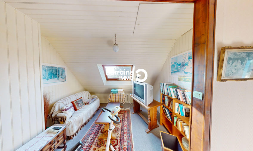 A l’étage, la maison propose trois chambres, une salle de bains avec WC, un grenier et un espace détente parfait pour se relaxer ou aménager un bureau.