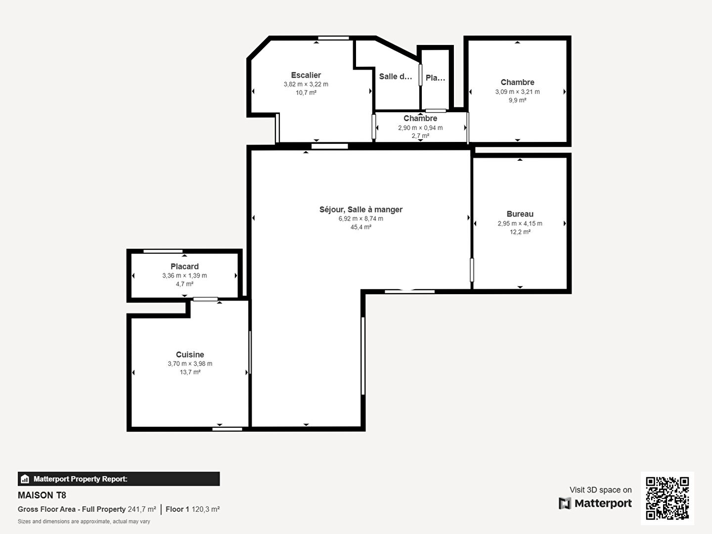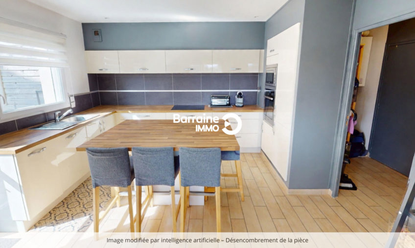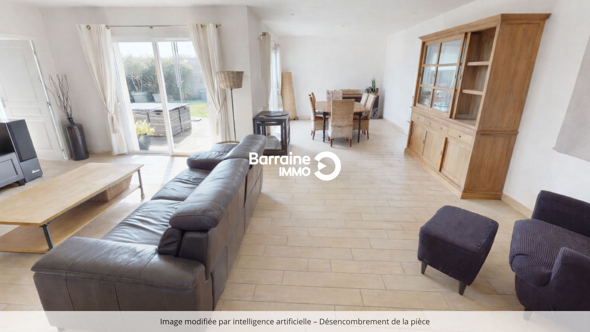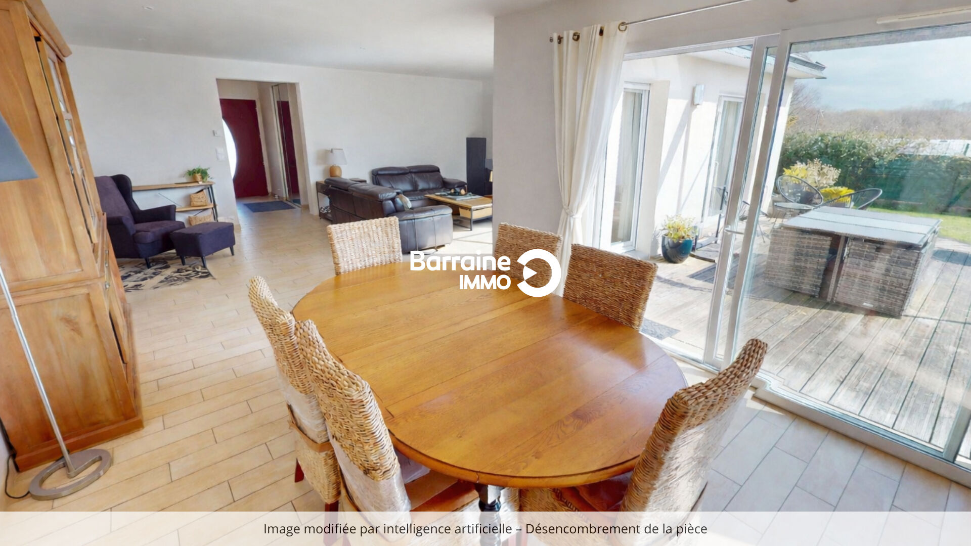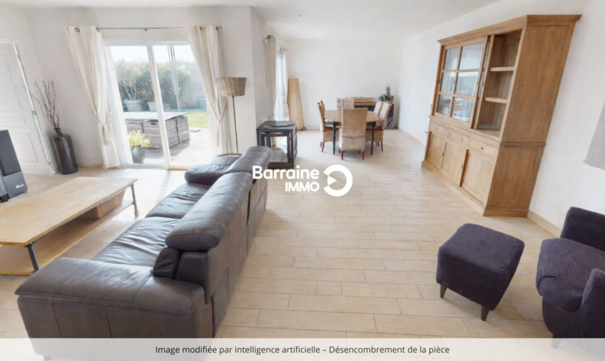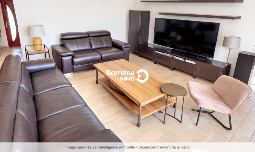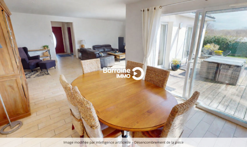 Son agencement fonctionnel s’ouvre sur un bel espace de vie comprenant un grand séjour et salle à manger, où la lumière naturelle traverse les pièces, créant une atmosphère chaleureuse.