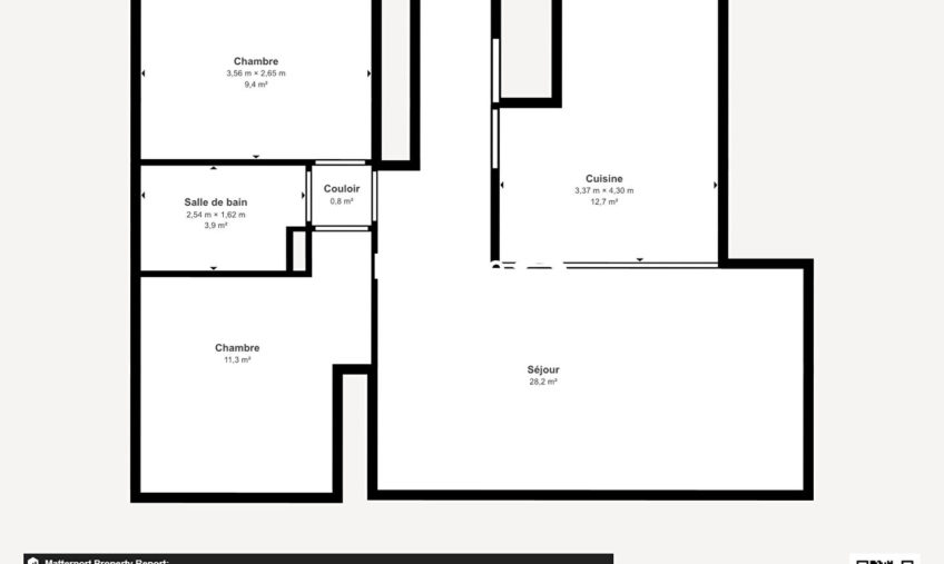 Il est situé au rez-de-chaussée d’un immeuble construit en 2000 avec interphone. Il comporte deux chambres, une cuisine américaine équipée, une salle de bains et des toilettes. Cet appartement bénéficie d’un chauffage individuel.