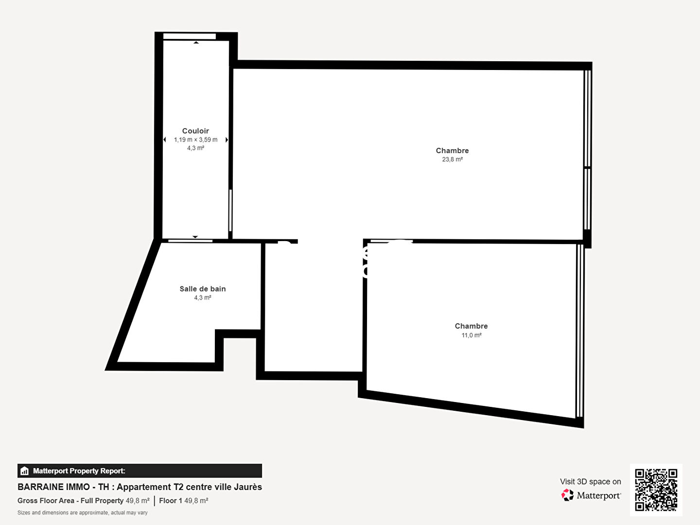 une chambre d’environ 11 m²,