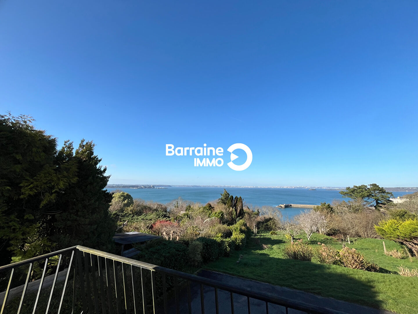 Un jardin arboré entoure la propriété, offrant espace et intimité dans un cadre privilégié face à la mer. (3.29 % honoraires TTC à la charge de l’acquéreur.)