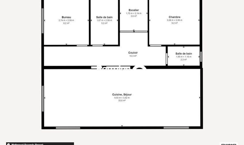 La maison se compose au premier étage : d’un séjour lumineux avec accès à un balcon exposé plein Sud, d’une cuisine aménagée-équipée donnant sur le séjour, d’une chambre, d’un bureau, d’une salle d’eau et d’un wc séparé.