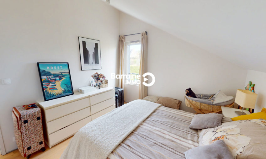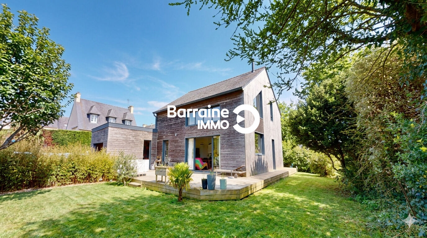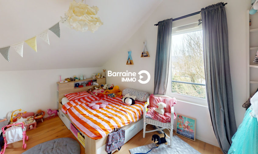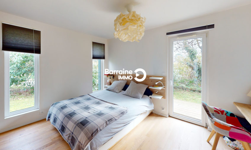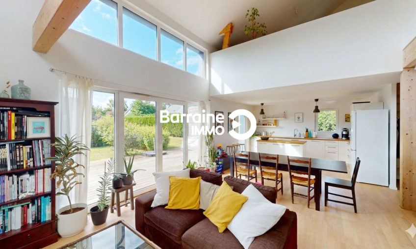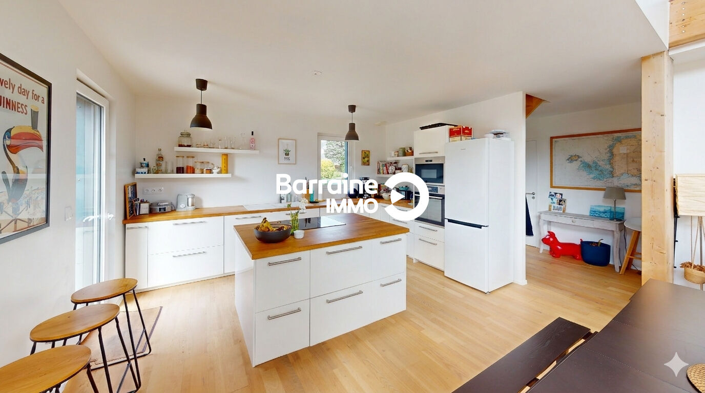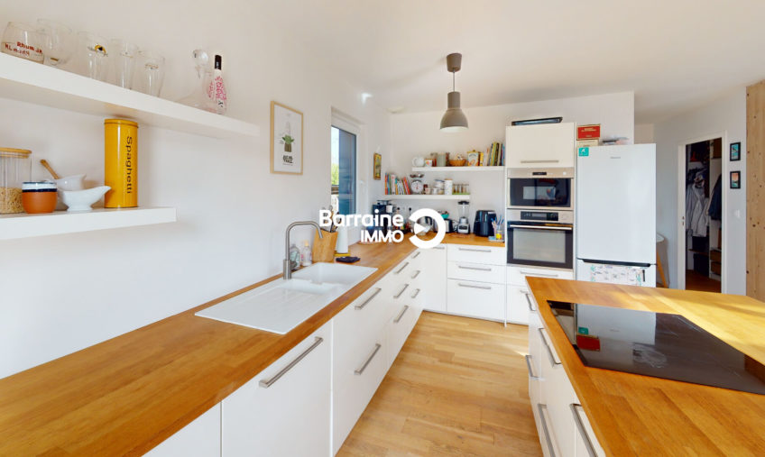 Découvrez cette magnifique maison de 127 m² au sol et 121m² habitables, construite en 2018, située à La Forest Landerneau, exposée plein sud-ouest pour un ensoleillement optimal. Cette maison en ossature bois comprend une entrée, un séjour salon – cuisine de 41m² donnant de plain pied sur le jardin, une suite parentale avec dressing, salle d’eau, un cellier, un WC.