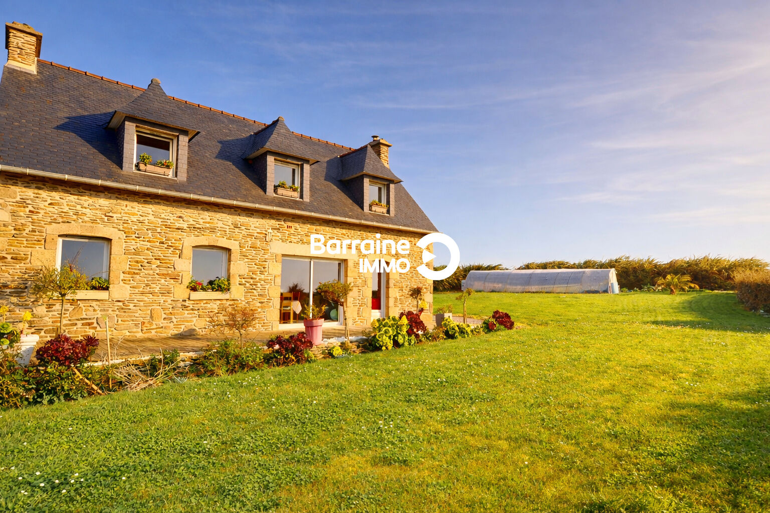 A VENDRE CHEZ BARRAINE IMMO : MAISON STYLE LONGERE 150M² AVEC APERÇU MER A PLOUGONVELIN ref PZ00333-TH
