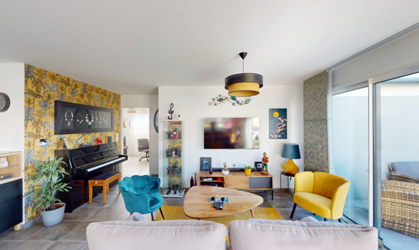 Dès l’entrée, vous serez séduit par un bel espace de vie de 33,87 m², baigné de lumière grâce à son exposition plein sud, avec une cuisine ouverte aménagée et équipée.