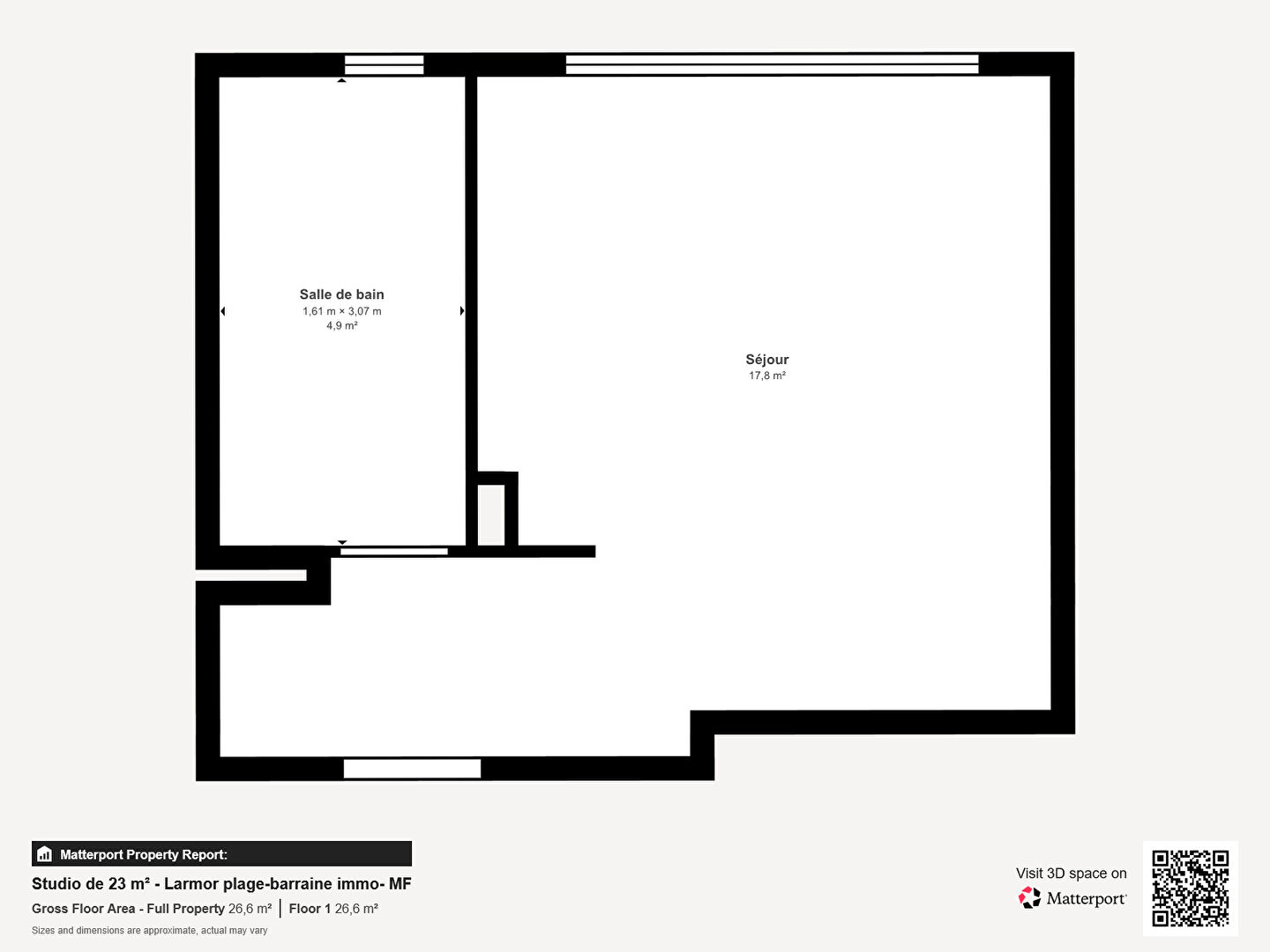 Situé au 2ème et dernier étage d’un immeuble des années 80, il se compose d’une pièce principale, d’un coin cuisine et d’une salle d’eau avec WC.