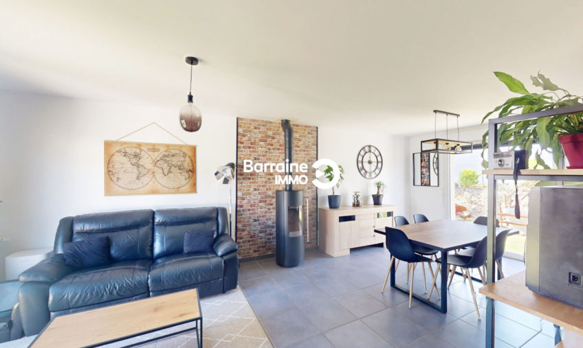 A seulement 10 minutes de Quimper, dans la commune de Plonéis, découvrez cette maison récente, mitoyenne par le garage, d’environ 102m² au sol, toujours sous garantie décennale, construite en 2022, située en plein centre de Plonéis, à seulement 200 mètres des commerces, de l’école primaire publique Paul-Emile Victor et commodités.