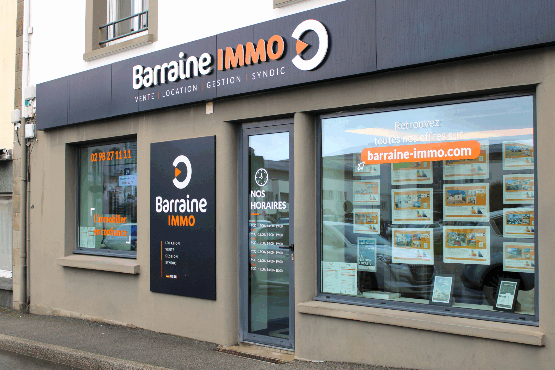 Barraine Immo, votre agence immobilière sur la Presqu’ile de Crozon. Implantées depuis de nombreuses années sous le nom de Cabinet Treguer, les équipes de Barraine Immo connaissent très bien le marché de la presqu’ile de Crozon, et sont à même de vous conseiller pour l’achat ou la vente de votre appartement ou maison. Nos équipes peuvent aussi vous accompagner pour la location, la gestion locative de votre bien que ce soit sur Crozon, Camaret, Telgruc, Morgat, Le Fret, Lanvéoc, Argol, Landévennec, Pentrez – St Nic, Rosnoen, Plomodiern et Le Faou. Au plaisir de vous recevoir dans notre agence !