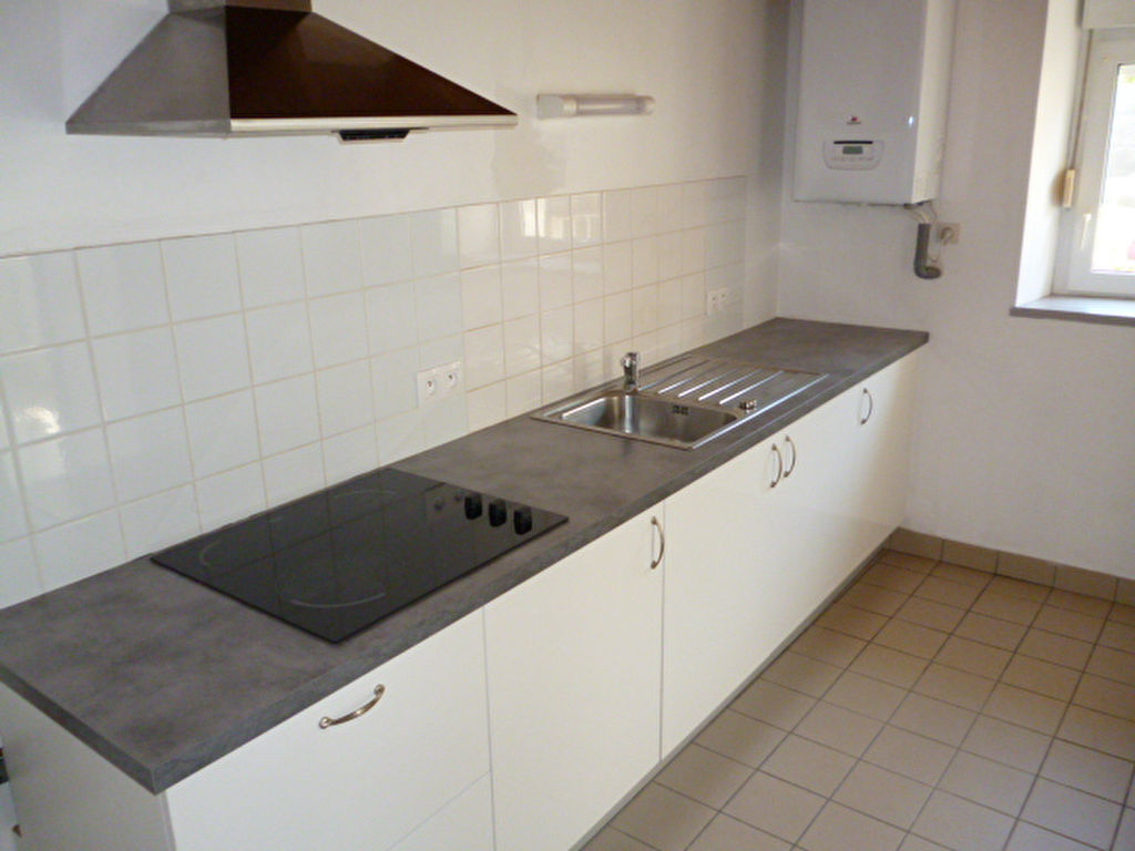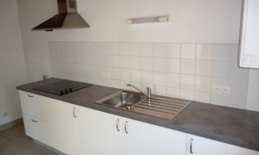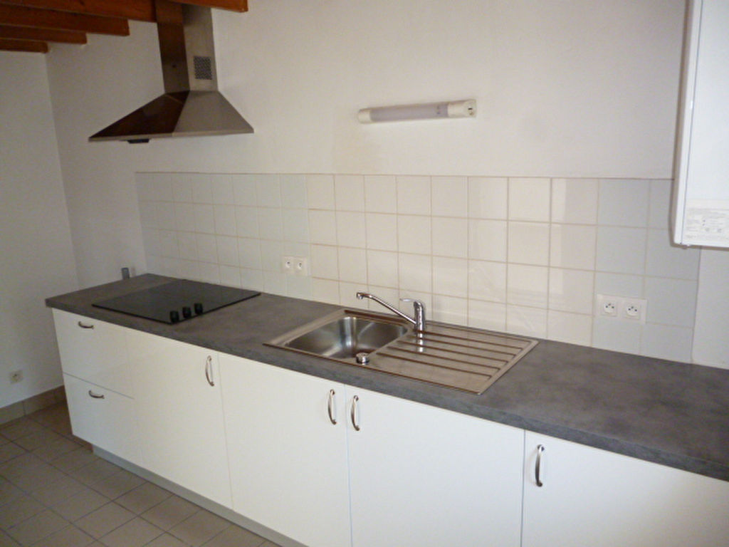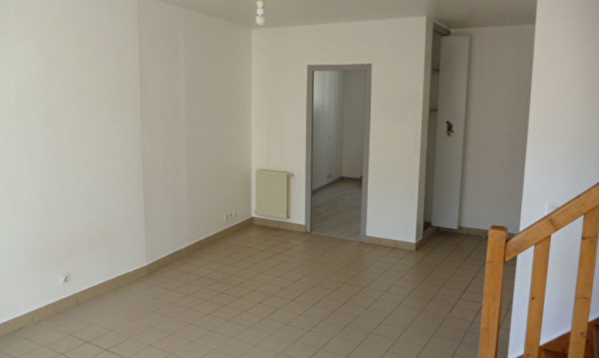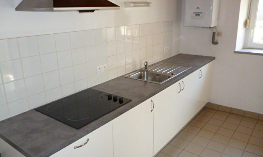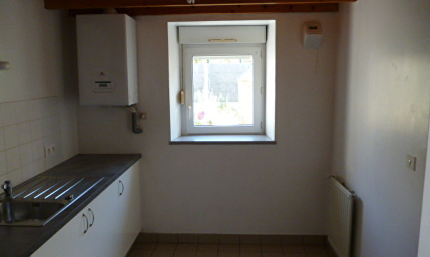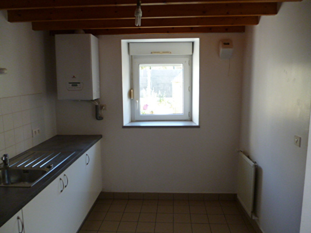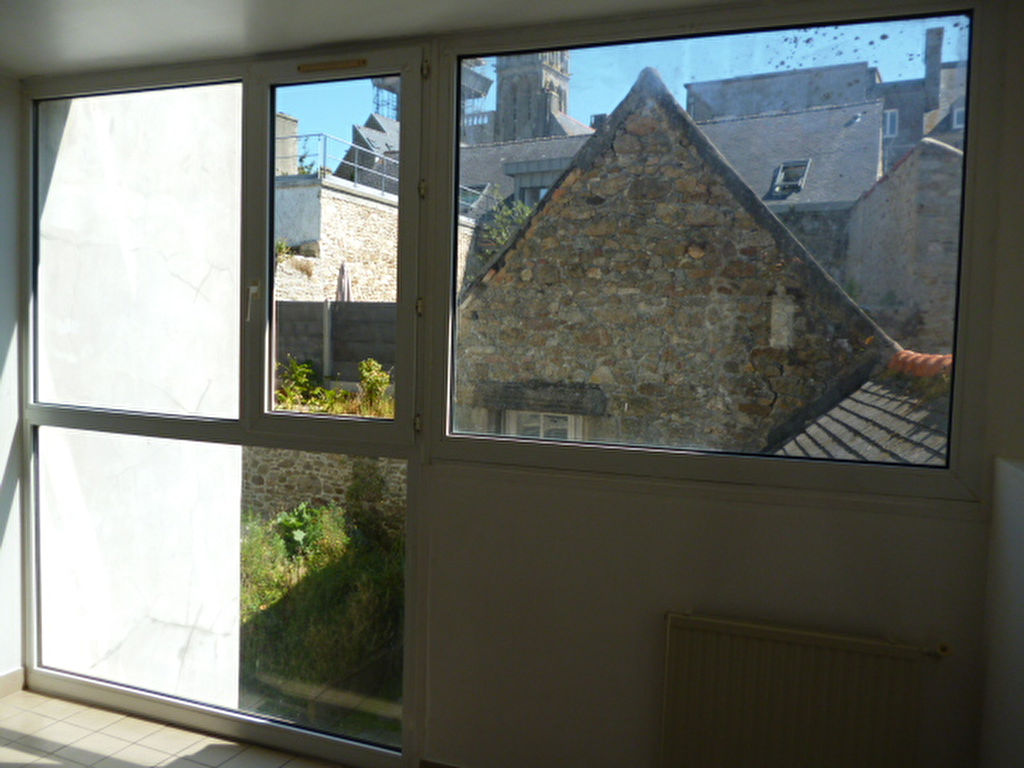 Plein centre de ST POL DE LEON, Appartement T3 en duplex comprenant séjour/salon avec placard, cuisine aménagée et semi-équipée, une chambre, salle de bains, wc ; à l’étage une chambre.
