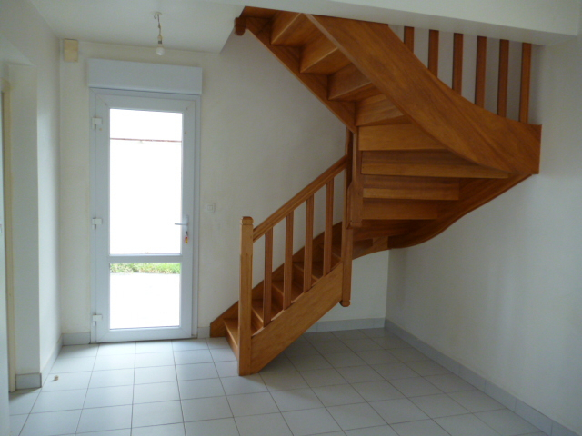 Cet appartement se compose ainsi : au RDC : un coin cuisine ouvert sur séjour/salon, cellier, wc ; à l’étage : palier, deux chambres, salle de bains.