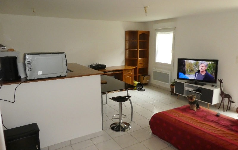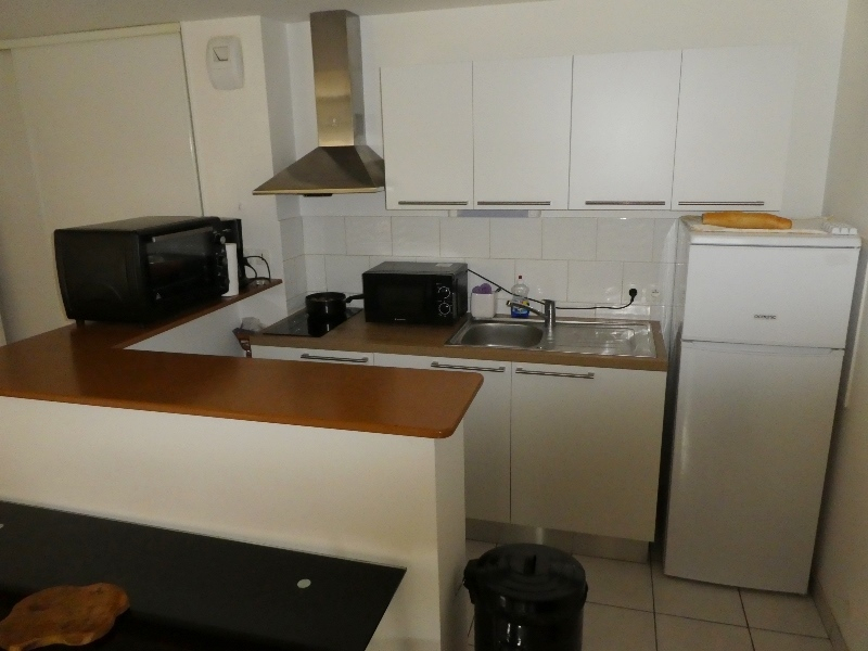 Dans résidence récente et sécurisée, appartement T2 en rez-de-jardin, comprenant entrée, coin cuisine aménagée ouvert sur séjour/salon donnant sur terrasse, placards, une chambre avec rangement, salle d’eau avec wc.