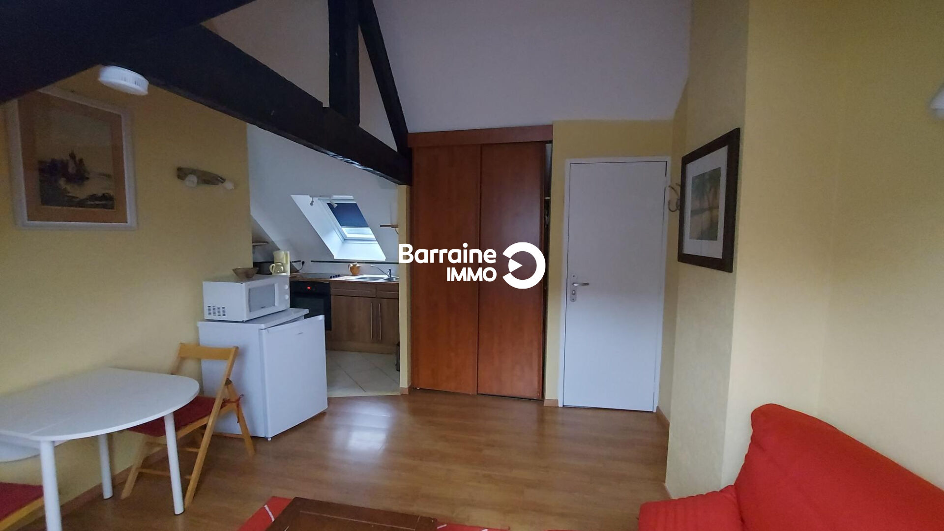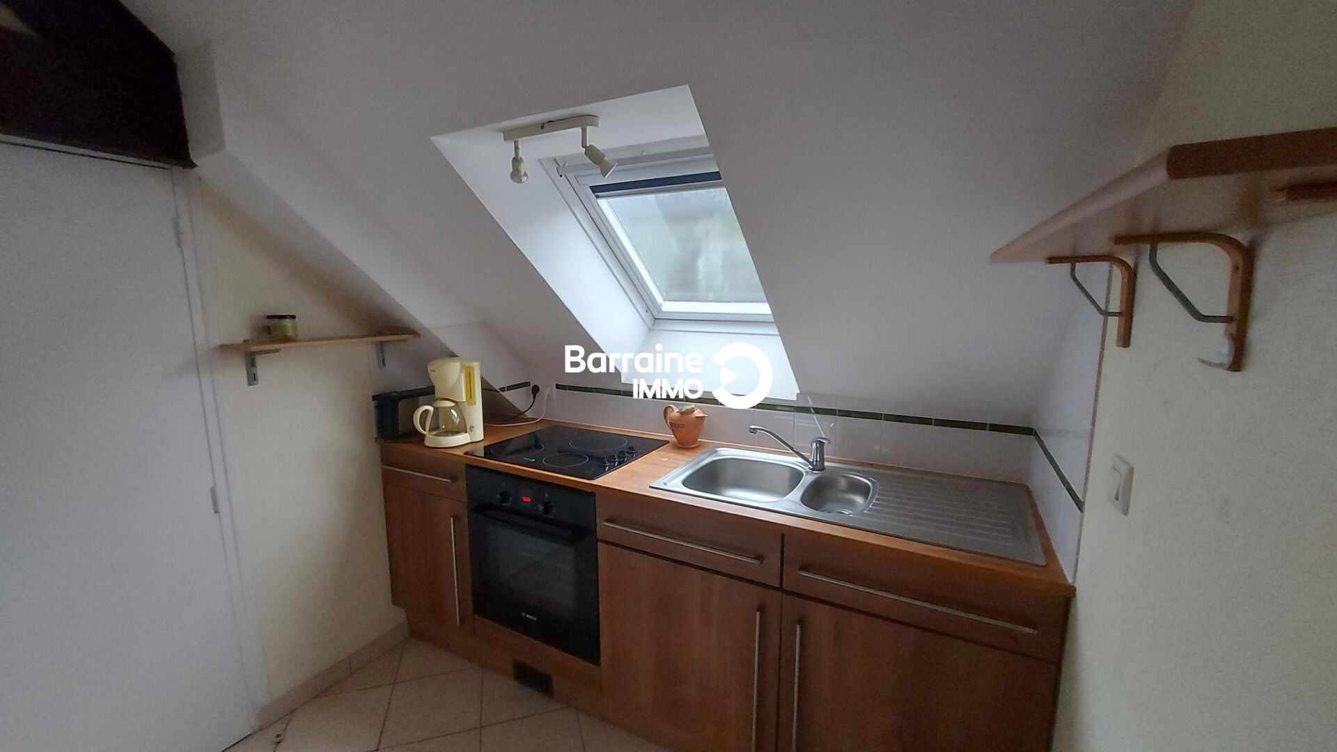 A louer : Charmant appartement de 2 pièces situé au 4ème et dernier étage d’un immeuble en plein coeur de Morlaix. Avec une surface de 20.47 m², cet appartement comprend une chambre, une salle d’eau et un WC. La cuisine est aménagée et équipée, et le chauffage est électrique avec des convecteurs. Profitez d’un cadre calme tout en étant à proximité de toutes les commodités. Le secteur est animé avec de nombreux restaurants, boulangeries et supermarchés à quelques pas. Idéal pour un jeune couple ou une personne seule. Bail habitation (Loi 89) proposé par l’Agence Barraine IMMO de Morlaix – 02.98.72.72.72.