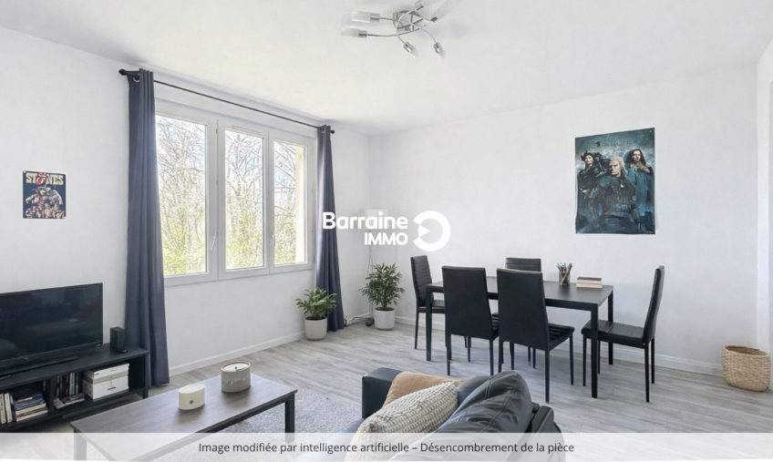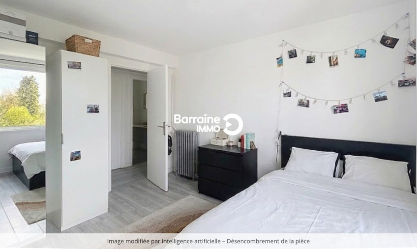 Il est situé dans un immeuble des années 70 de quatre étages. L’intérieur de l’appartement est en bon état. Des établissements scolaires du primaire et du secondaire se trouvent à moins de 10 minutes à pied. Côté transports en commun, il y a 12 lignes de bus dans les alentours. L’aéroport Brest-Bretagne est accessible à 7 km. On trouve des restaurants, des commerces, des boulangeries, deux supermarchés, une épicerie et deux boucheries dans les environs.