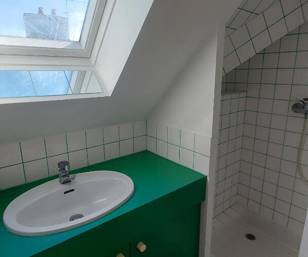 Il se situe dans un petit immeuble d’un étage. Il est en très bon état général.
